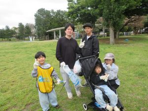 家族の方にも多く参加していただき、お子さんと一緒に楽しんでゴミ拾いをしていました。