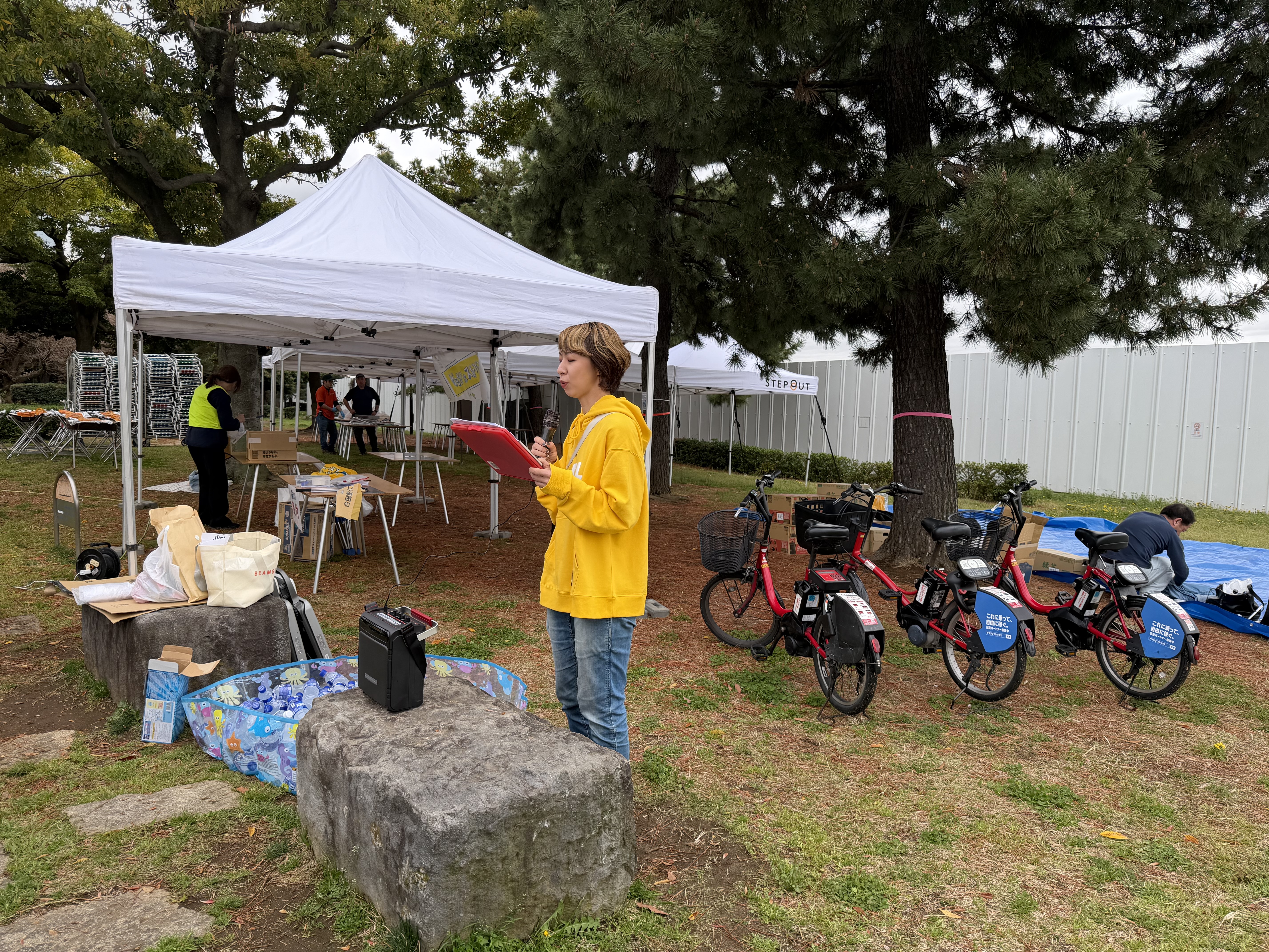 ロフト労働組合の三浦書記次長の司会で、「ゴミ拾いはスポーツだ!の掛け声を合図に競技がスタート!